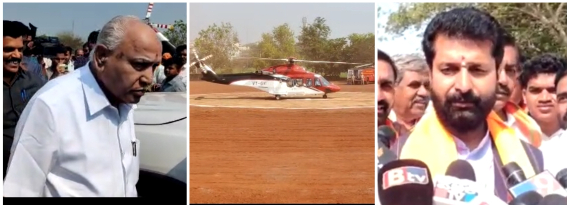 ಚಿಕ್ಕೋಡಿ : ಹೆಲಿಕ್ಯಾಪ್ಟರ ಮೂಲಕ ಚಿಕ್ಕೋಡಿಯ , ಅಂಕಲಿ ಶಿವಾಲಯ ಬಳಿ ವಿಜಯ ಸಂಕಲ್ಪ ಯಾತ್ರೆ ಕಾರ್ಯಕ್ರಮಕ್ಕೆ ಹೆಲಿಪ್ಯಾಡಗೆ ಬಂದಿಳಿದ ಯಡಿಯೂರಪ್ಪ, ಯಡಿಯೂರಪ್ಪ ಅವರಿಗೆ ಸಿ ಟಿ ರವಿ, ಲಕ್ಷ್ಮಣ ಸವದಿ, ಪ್ರಭಾಕರ ಕೋರೆ ಆಗಮನ ಮಾಡಿಕೊಂಡರು.